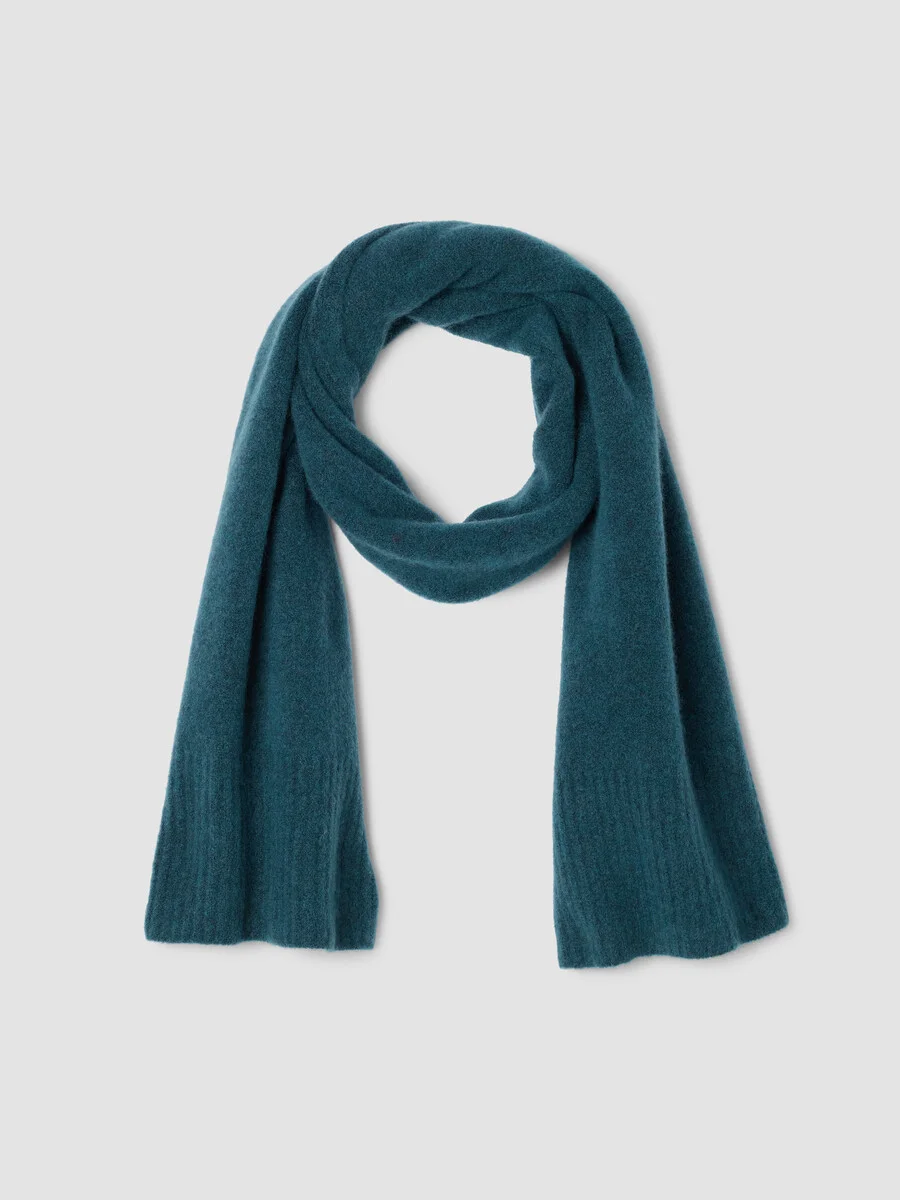 Blissfully soft. A plush scarf with subtly ribbed ends. In a textural blend of cashmere and silk. Style No. F5MPS-A2100 DESIGN - Only available at select EILEEN FISHER stores. - Generously sized to serve as a scarf or a wrap. - 75 inches long by 14 inches wide; ribbed ends. - Style No. F5MPS-A2100 - SKU: 198895292232 FABRIC - One of our softest yarns, an Italian boucle with textural poufs of cashmere and silk. - Hand wash cold. Reshape and lay flat to dry. May snag on jewelry. - Made in Romania. 72% Cashmere/17% Silk/10% Recycled Nylon/1% Elastane. SUSTAINABILITY - This fiber is certified to the Sustainable Fibre Alliance Cashmere Standard and is produced in a way that protects animal welfare and promotes safe working conditions.