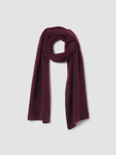 Blissfully soft. A plush scarf with subtly ribbed ends. In a textural blend of cashmere and silk. Style No. F5MPS-A2100 DESIGN - Only available at select EILEEN FISHER stores. - Generously sized to serve as a scarf or a wrap. - 75 inches long by 14 inches wide; ribbed ends. - Style No. F5MPS-A2100 - SKU: 198895050368 FABRIC - One of our softest yarns, an Italian boucle with textural poufs of cashmere and silk. - Hand wash cold. Do not wring. Reshape and lay flat to dry. May snag on jewelry. - Made in Romania. 72% Cashmere/17% Silk/10% Recycled Nylon/1% Elastane. SUSTAINABILITY - This fiber is certified to the Sustainable Fibre Alliance Cashmere Standard and is produced in a way that protects animal welfare and promotes safe working conditions.