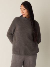 Blissfully soft. The turtleneck top with raglan sleeves, in a sumptuous blend of cashmere and silk. Style No. F5MPS-W6234 DESIGN - Close at the shoulders, wider at the hem. A silhouette that fits the body with ease. - Black top only available online and in our LAB store. - Astrid is 5'9" and wears a size S in Sea Spray, which measures 25 inches on the body. Size 1X measures 27 1/2 inches on the body. - Turtleneck, raglan sleeves. - Style No. F5MPS-W6234 FABRIC - One of our softest yarns, an Italian boucle with textural poufs of cashmere and silk. - Hand wash cold. Reshape and lay flat to dry. May snag on jewelry. - Made in Romania. 72% Cashmere/17% Silk/10% Recycled Nylon/1% Elastane. SUSTAINABILITY - This fiber is certified to the Sustainable Fibre Alliance Cashmere Standard and is produced in a way that protects animal welfare and promotes safe working conditions.
