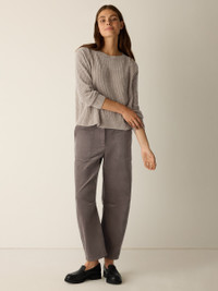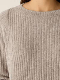 Cozy and effortless. The crew neck top in a velvety chenille blend made with Tencel™ Lyocell. Style No. F5CEA-W6247 DESIGN - Designed with a generous, boxy fit that drapes away from the body to create movement. - Bo Bay is 5'9" and wears a size XS in Sea Spray, which measures 22 inches on the body. Size 1X measures 24 1/2 inches on the body. - Crew neck. - Finished with ribbed trim at the neck, cuffs and hem. - Style No. F5CEA-W6247 FABRIC - Velvety texture that drapes and moves, with a touch of cotton for softness. - Hand wash cold. Reshape and lay flat to dry. May snag on jewelry. - Made in Cambodia. 74% Lyocell/26% Cotton. SUSTAINABILITY - Tencel™ Lyocell is made from responsibly harvested trees.