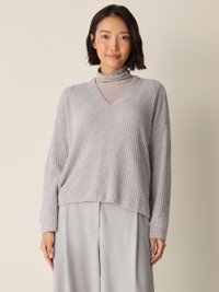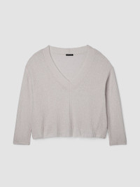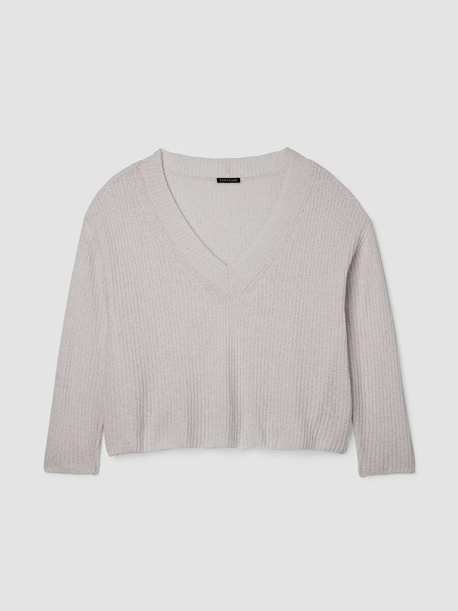 Soft and simple. The V-neck top transformed by the velvety texture of our Chenille Blend. Style No. F5CHY-W6261 DESIGN - A generous, boxy fit that drapes away from the body to create movement. - Select colors may vary by store. Black top only available online. - Jisu is 5'9" and wears a size S in Chalk, which measures 22 1/2 inches on thebody. Size 1X measures 25 inches on the body. - V-neck, drop shoulder. - Ribbed trim at the neck. - Style No. F5CHY-W6261 FABRIC - Velvety texture that drapes and moves, with a touch of cotton for softness. - Hand wash cold. Do not wring. Reshape and lay flat to dry. May snag on jewelry. - Made in Cambodia. 74% Tencel Lyocell™/26% Organic Cotton. SUSTAINABILITY - Tencel™ Lyocell fiber is made from responsibly harvested trees.