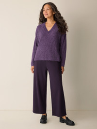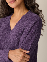 Soft and simple. The V-neck top transformed by the velvety texture of our Chenille Blend. Style No. F5CHY-W6261 DESIGN - A generous, boxy fit that drapes away from the body to create movement. - Select colors may vary by store. Black top only available online. - Jisu is 5'9" and wears a size S in Chalk, which measures 22 1/2 inches on thebody. Size 1X measures 25 inches on the body. - V-neck, drop shoulder. - Ribbed trim at the neck. - Style No. F5CHY-W6261 FABRIC - Velvety texture that drapes and moves, with a touch of cotton for softness. - Hand wash cold. Do not wring. Reshape and lay flat to dry. May snag on jewelry. - Made in Cambodia. 74% Tencel Lyocell™/26% Organic Cotton. SUSTAINABILITY - Tencel™ Lyocell fiber is made from responsibly harvested trees.