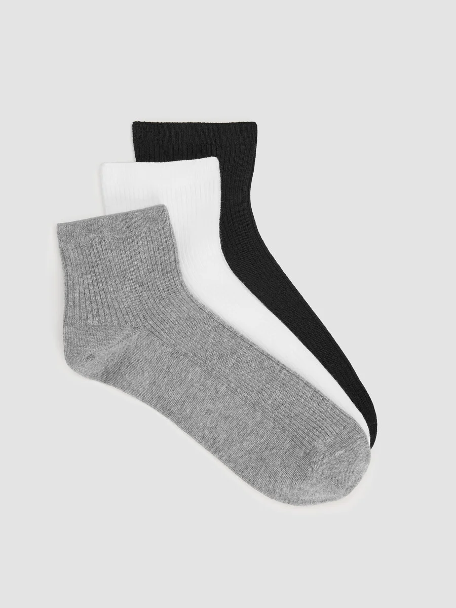A multipack of ankle socks in the most essential colors. In lightweight cotton with subtle ribbing. Style No. F5DGZ-L0333 DESIGN - Nonbinding cuff for comfort; finished with hand-linked toe seams. - One size fits women's shoe sizes 6-10. - Style No. F5DGZ-L0333 - SKU: 198895022815 FABRIC - Cotton is washed for extra softness—we add a touch of spandex to help the socks stay in place. - Machine wash cold. Line dry. - Made in Thailand. 64% Organic Cotton /32% Nylon /4% Spandex.
