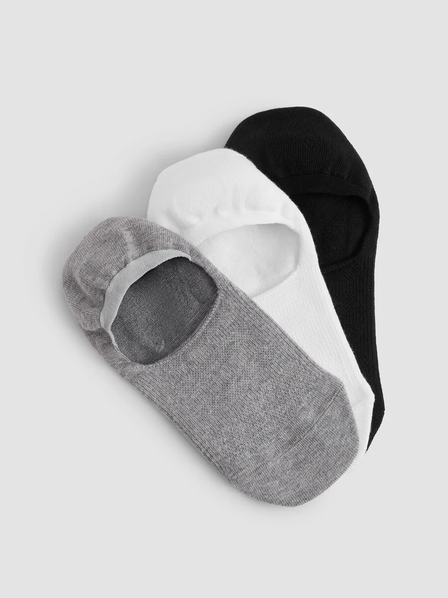 A multipack of no-show socks designed to stay in place. Perfect for wearing with sneakers or flats. Style No. F5YRN-L0311 DESIGN - Finished with hand-linked toe seams. - One size fits women's shoe sizes 6-10. - Style No. F5YRN-L0311 - SKU: 198895089955 FABRIC - Cotton is washed for extra softness—we add a touch of spandex to help the socks stay in place. - Machine wash cold. Tumble dry low. - Made in Thailand. 61% Organic Cotton/33% Nylon/6% Spandex.