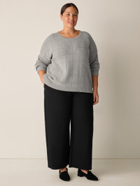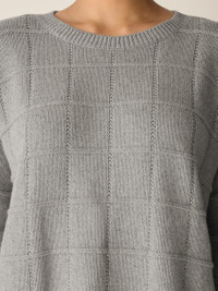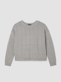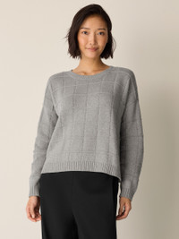 Soft and simple. The crew neck top elevated by a knitted grid pattern, in a cozy blend of cotton and recycled cashmere. Style No. F5DKS-W6243 DESIGN - Designed with a generous, boxy fit that drapes away from the body to createmovement. - Only available at select EILEEN FISHER stores. - Jisu is 5'9" and wears a size S in Dark Pearl, which measures 22 inches on thebody. Size 1X measures 24 1/2 inches on the body. - Crew neck, drop shoulder. - Finished with ribbed trim at the neck, cuffs and hem. - Style No. F5DKS-W6243 FABRIC - Soft and luxurious. We added recycled cashmere to organic cotton for alightweight knit that transitions between seasons. Our recycled cashmere reducestextile waste and has a lower eco footprint. - May snag on jewelry. Wear with care. - Made in Vietnam. SUSTAINABILITY - Organic farming supports clean water and healthy soil. - Yarn spun with recycled cashmere, part of our commitment to changing the wayclothes are made. - Yarn meets the Global Recycled Standard.