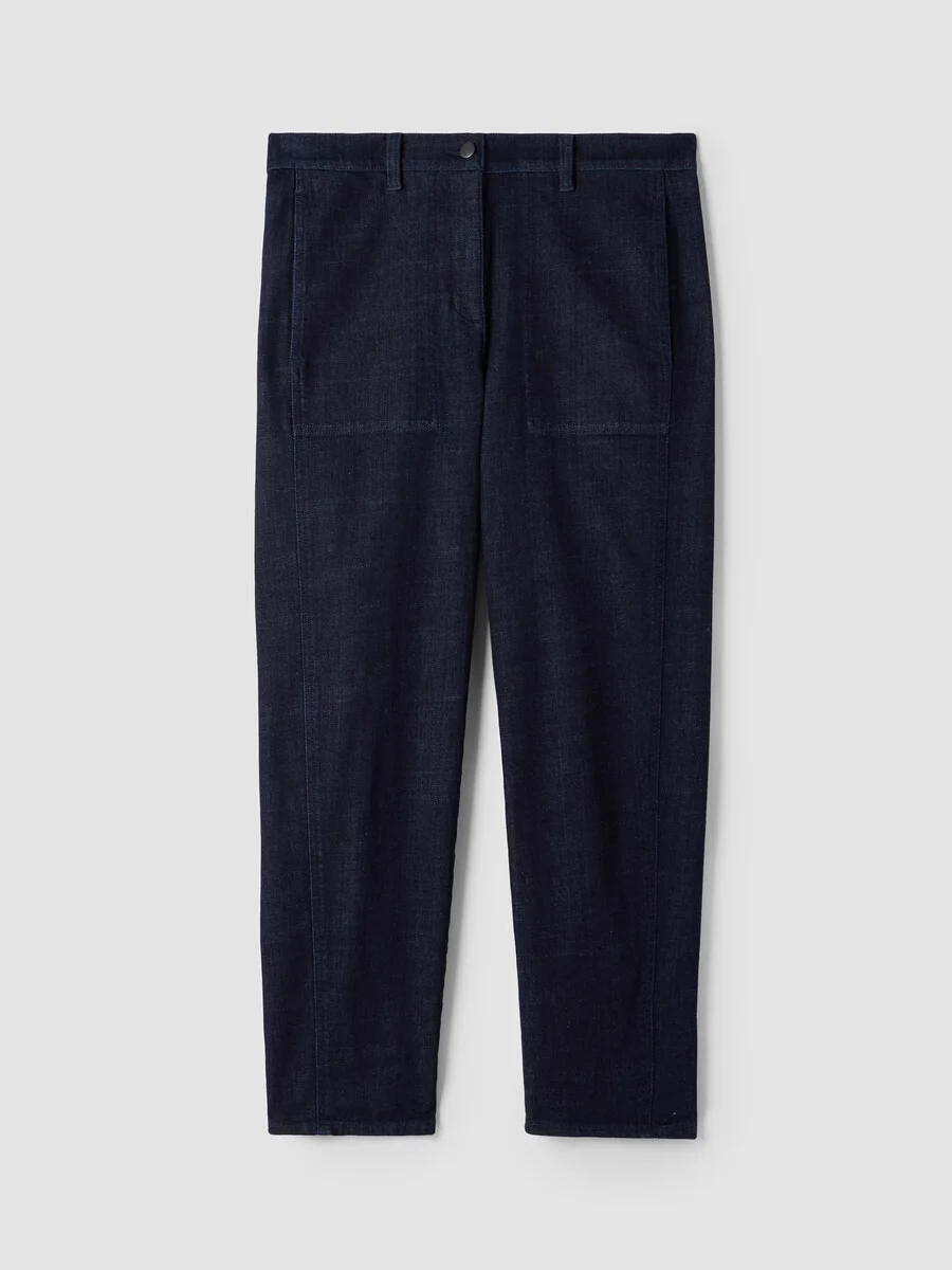 Our best-selling lantern pant with a softly sculpted hem and front pockets. In a blend of organic and recycled cotton—with just the right amount of stretch. Made in a Fair Trade Certified™ factory. Style No. S5BDE-P4715 DESIGN - Subtly curved through the leg, slightly tapered at the ankle. Fits the body with ease. - Start with the Foundation. This jean is designed to be worn on repeat. It’s part of our system of dressing that lets you do more with less. - Bo Bay is 5'9" and wears a size XS. - 1 1/2-inch waistband with belt loops, fly front with zipper and button closure. - Side panel detail with front on-seam pockets, back patch pockets. - 10 1/2-inch rise; 28-inch inseam; 7-inch leg opening (size XS). 10 1/2-inch rise; 26-inch inseam; 7-inch leg opening (size PS). 13-inch rise; 28-inch inseam; 8-inch leg opening (size 1X). - Style No. S5BDE-P4715 FABRIC - An update to our classic-weight denim. We blended organic and recycled cotton, and added a touch of stretch for comfort. - Machine wash cold. Tumble dry low. - Made in Indonesia. 78% Organic Cotton/20% Recycled Cotton/2% Elastane. SUSTAINABILITY - Our Fair Trade Certified™ factories meet rigorous social and environmental standards. By choosing Fair Trade Certified™ products, you’re helping to improve the lives of workers, build resilient communities and protect the environment. - Organic farming supports clean water and healthy soil.