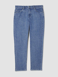 The slim jean: a modern silhouette with a flattering high rise. In a blend of organic and recycled cotton—with just the right amount of stretch. Made in a Fair Trade Certified™ factory. Style No. S6BDE-P4679 DESIGN - Fits close to the body. Our slim fit is easier than the industry standard—with stretch for maximum comfort. - Only available at select EILEEN FISHER stores. - Kalyane is 5'10" and wears a size S in Black. Haejin is 5'5" and wears a size PS. Ryan is 5'8" and wears a size 1X. - 5-pocket styling, fly front with button and zipper closure. - Belt loops. - 11-inch rise; 28-inch inseam; 7-inch leg opening (size S). 10-inch rise; 26-inch inseam; 6 1/2-inch leg opening (size PS). 13-inch rise; 28-inch inseam; 7-inch leg opening (size 1X). - Style No. S6BDE-P4679 FABRIC - An update to our classic-weight denim. We blended organic and recycled cotton, and added a touch of stretch for comfort. - Machine wash cold. Tumble dry low. Color tranfer may occur. - Made in Indonesia. 78% Organic Cotton/20% Recycled Cotton/2% Elastane. SUSTAINABILITY - Our Fair Trade Certified™ factories meet rigorous social and environmental standards. By choosing Fair Trade Certified™ products, you’re helping to improve the lives of workers, build resilient communities and protect the environment. - Organic farming supports clean water and healthy soil.