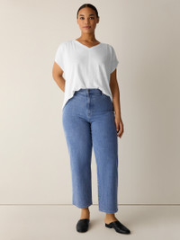 The classic fit of our straight jean, with a high waist and ankle-baring length. In a blend of organic and recycled cotton and made in a Fair Trade Certified™ factory. Style No. S6BDE-P4888 DESIGN - Straight through the leg. Fits the body with ease. - Valerie is 5'9" and wears a size S. - 5-pocket styling, fly front with button and zipper closure. - Belt loops. - 11-inch rise; 28-inch inseam; 9-inch leg opening (size S). 10-inch rise; 26-inch inseam; 8 1/2-inch leg opening (size PS). 13-inch rise; 28-inch inseam; 10-inch leg opening (size 1X). - Style No. S6BDE-P4888 FABRIC - An update to our classic-weight denim. We blended organic and recycled cotton, and added a touch of stretch for comfort. - Machine wash cold. Tumble dry low. Color tranfer may occur. - Made in Indonesia. 78% Organic Cotton/20% Recycled Cotton/2% Elastane. SUSTAINABILITY - Our Fair Trade Certified™ factories meet rigorous social and environmental standards. By choosing Fair Trade Certified™ products, you’re helping to improve the lives of workers, build resilient communities and protect the environment. - Organic farming supports clean water and healthy soil.