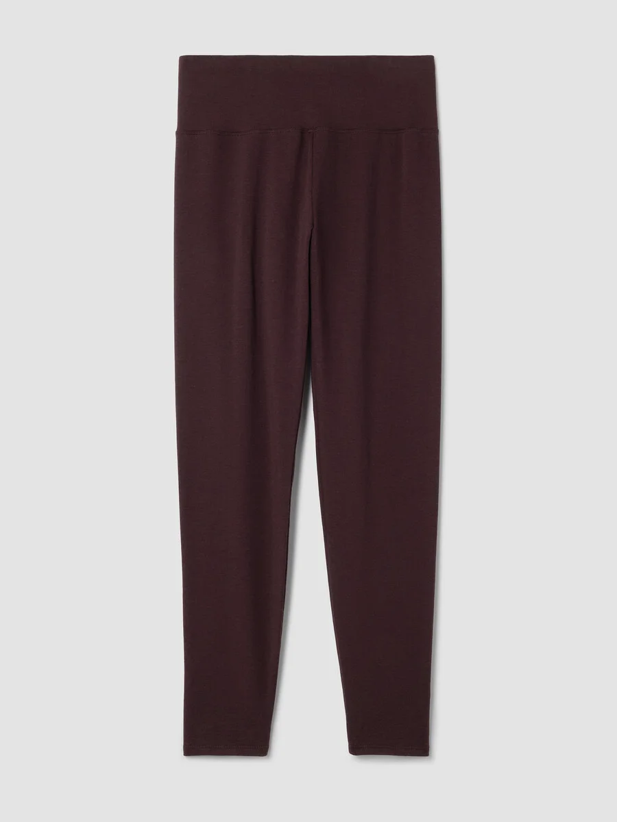 Meet the high-waisted leggings so comfortable you won't want to take them off. In our best-loved terry—fleecy on the inside with the natural stretch of a knit. So soft, we call it the "Hug." Style No. F5FYW-P4561 DESIGN - Our closest fit, designed to hug the body. With stretch for maximum comfort. - Only available at select EILEEN FISHER stores. - Kalyane is 5'10" and wears a size S. - 4-inch-wide yoke waistband (size S). 3 1/2-inch-wide yoke waistband (size PS). - 11-inch rise; 27 1/2-inch inseam; 4 1/2-inch leg opening (size S). 10 1/2-inch rise; 25 1/2-inch inseam; 4-inch leg opening (size PS). 13-inch rise; 271/2-inch inseam; 5-inch leg opening (size 1X). - Style No. F5FYW-P4561 FABRIC - An evolution of our best-loved terry. Smooth and soft with a brushed fleecy interior for a cozier feel. Knit in the US with Tencel™ Lyocell. - Machine wash cold. Line dry. - Made in USA of imported materials. 65% Tencel™ Lyocell/28%Organic Cotton/7% Elastane. SUSTAINABILITY - Tencel™ Lyocell fiber is made from responsibly harvested trees.