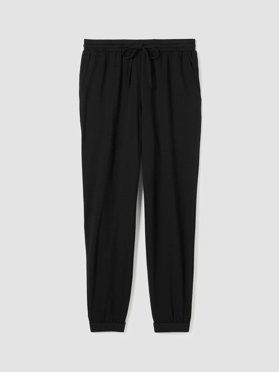 An easy jogger pant with a drawstring waist and elasticized ankle cuffs. In our best-loved terry—with a fleecy interior and the natural stretch of a knit. So soft, we call it the "Hug." Style No. F4FYW-P4597 DESIGN - A silhouette designed to taper at the ankle. Fits the body with ease. - Polina is 5'10" and wears a size XS. - 2-inch elastic waistband with drawstring, front pockets. - 1-inch elastic ankle cuffs. - 10 1/2-inch rise, 28-inch inseam; 5-inch leg opening (size XS). 13-inch rise; 28-inch inseam; 6-inch leg opening (size 1X). - Style No. F4FYW-P4597 FABRIC - An evolution of our best-loved terry, updated with cotton. Smooth and soft with a brushed fleecy interior for a cozier feel. - Machine wash cold. Line dry. - Made in USA of imported materials. 65% Tencel� Lyocel/28%Organic Cotton/7% Elastane. SUSTAINABILITY - Tencel™ Lyocell fiber is made from responsibly harvested trees. - Fabric is knit, dyed, cut and sewn in the US.