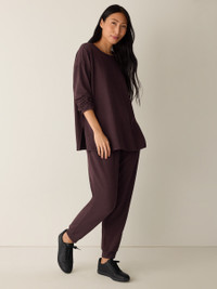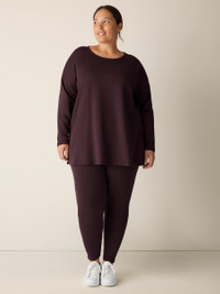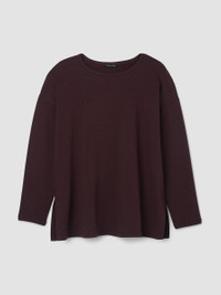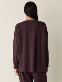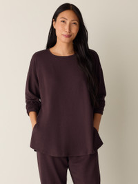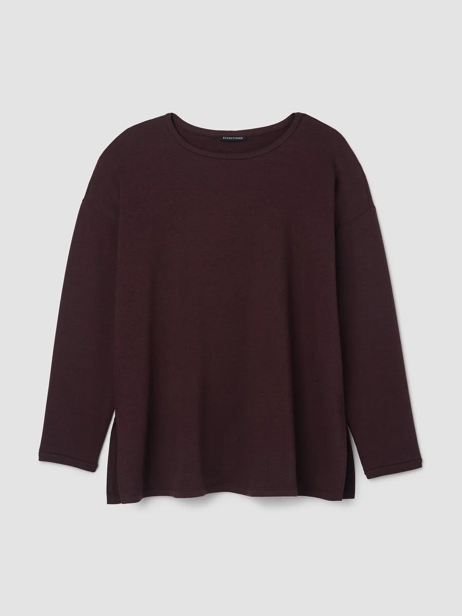 The box-top. A relaxed shape with a round neck and long silhouette, in our fleecy terry. So soft, we call it the "Hug." Style No. F5FYW-T6244 DESIGN - A generous, boxy fit that drapes away from the body to create movement. - Astrid is 5'9" and wears a size S in Atlantis, which measures 29 inches on thebody. Size PS measures 27 inches on the body. Size 1X measures 31 1/2 inches onthe body. - Round neck, long sleeves. - 6 1/2-inch side slits. - Ribbed trim at the neck and cuffs. - Style No. F5FYW-T6244 FABRIC - An evolution of our best-loved terry. Smooth and soft with a brushed fleecyinterior for a cozier feel. Knit in the US with Tencel™ Lyocell. - Machine wash cold. Line dry. - Made in USA of imported materials. 65% Tencel™ Lyocell/28%Organic Cotton/7% Elastane. SUSTAINABILITY - Tencel™ Lyocell fiber is made from responsibly harvested trees.