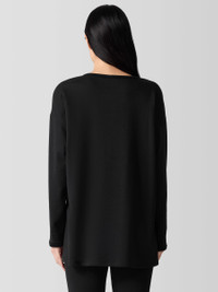 The box-top. A relaxed shape with a round neck and long silhouette, in our fleecy terry. So soft, we call it the "Hug." Style No. F5FYW-T6244 DESIGN - A generous, boxy fit that drapes away from the body to create movement. - Astrid is 5'9" and wears a size S in Atlantis, which measures 29 inches on thebody. Size PS measures 27 inches on the body. Size 1X measures 31 1/2 inches onthe body. - Round neck, long sleeves. - 6 1/2-inch side slits. - Ribbed trim at the neck and cuffs. - Style No. F5FYW-T6244 FABRIC - An evolution of our best-loved terry. Smooth and soft with a brushed fleecyinterior for a cozier feel. Knit in the US with Tencel™ Lyocell. - Machine wash cold. Line dry. - Made in USA of imported materials. 65% Tencel™ Lyocell/28%Organic Cotton/7% Elastane. SUSTAINABILITY - Tencel™ Lyocell fiber is made from responsibly harvested trees.