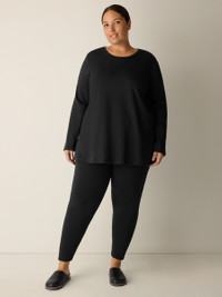 An effortless crew neck top, now with a longer silhouette and side slits. In our best-loved terry—with a fleecy interior and the natural stretch of a knit. Style No. F5FYW-T5945 DESIGN - Close at the shoulders, wider at the hem. A silhouette that fits the body with ease. - Select colors may vary by store. Black top only available online. - Size S measures 29 inches on the body. Size PS measures 27 inches on the body. Size 1X measures 31 1/2 inches on the body. - Crew neck, 5 1/2 inch side slits. - Style No. F5FYW-T5945 FABRIC - An evolution of our best-loved terry. Smooth and soft with a brushed fleecy interior for a cozier feel. Knit in the US with Tencel™ Lyocell. - Machine wash cold. Line dry. - Made in USA of imported materials. 65% Tencel™ Lyocell/28%Organic Cotton/7% Elastane. SUSTAINABILITY - Tencel™ Lyocell fiber is made from responsibly harvested trees.