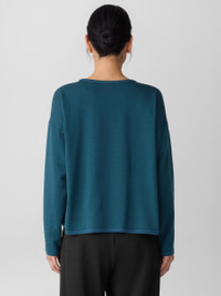 Soft and simple. The round neck box-top in our best-loved terry—fleecy on the inside with the natural stretch of a knit. So soft, we call it the "Hug." Style No. F5FYW-T6241 DESIGN - A generous, boxy fit that drapes away from the body to create movement. - Select colors may vary by store. - Kalyane is 5'10" and wears a size S, which measures 23 inches on the body. Size1X measures 25 1/2 inches on the body. - Round neck, drop shoulder. - Style No. F5FYW-T6241 FABRIC - An evolution of our best-loved terry. Smooth and soft with a brushed fleecyinterior for a cozier feel. Knit in the US with Tencel™ Lyocell. - Machine wash cold. Line dry. - Made in USA of imported materials. 65% Tencel™ Lyocell/28%Organic Cotton/7% Elastane. SUSTAINABILITY - Tencel™ Lyocell fiber is made from responsibly harvested trees.