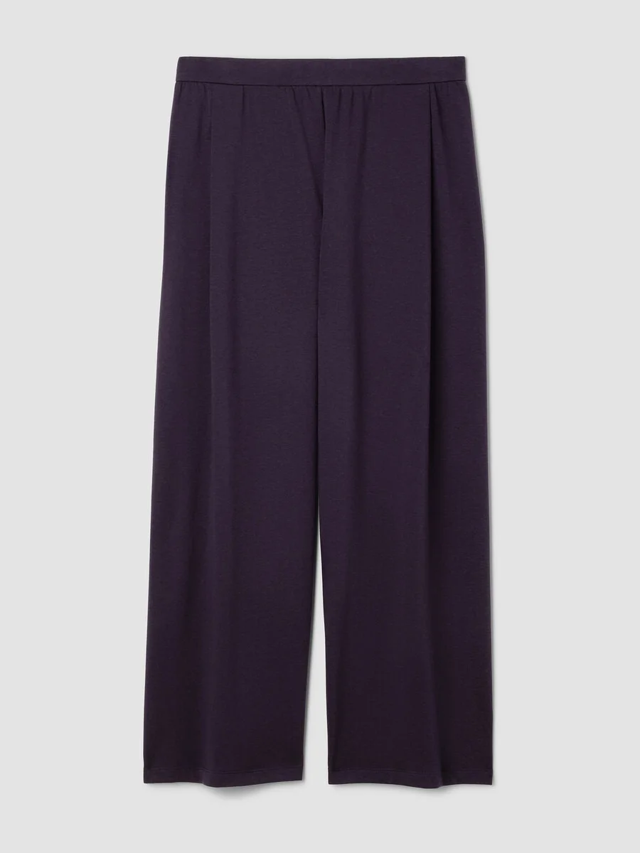 An easy straight pant elevated by pleats. In our best-loved terry—with a fleecy interior and the natural stretch of a knit. So soft, we call it the "Hug." Style No. F5FYW-P4874 DESIGN - Straight through the leg. Fits the body with ease. - Valerie is 5'9" and wears a size XS in Black. - 1 1/2-inch elastic waistband. - 2-inch-deep front pleats. - 11-inch rise; 28-inch inseam; 10-inch leg opening (size S). 11-inch rise; 26-inch inseam; 9 1/2-inch leg opening (size PS). 13-inch rise; 28-inch inseam; 11-inch leg opening (size 1X). - Style No. F5FYW-P4874 FABRIC - An evolution of our best-loved terry. Smooth and soft with a brushed fleecy interior for a cozier feel. Knit in the US with Tencel™ Lyocell. - Machine wash cold. Line dry. - Made in USA of imported materials. 65% Tencel™ Lyocell/28%Organic Cotton/7% Elastane. SUSTAINABILITY - Tencel™ Lyocell fiber is made from responsibly harvested trees.