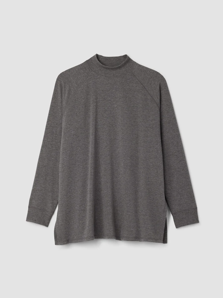 All-day comfort. The mock neck top with side slits, in a longer silhouette. Soft and cozy in our best-loved terry. Style No. F5FYW-T6380 DESIGN - Close at the shoulders, wider at the hem. A silhouette that fits the body with ease. - Select colors may vary by store. - Kalyane is 5'10" and wears a size S, which measures 30 inches on the body. Size PS measures 28 inches on the body. Size 1X measures 32 1/2 inches on the body. - Mock neck, raglan seams. - 8-inch side slits. - Style No. F5FYW-T6380 FABRIC - An evolution of our best-loved terry. Smooth and soft with a brushed fleecy interior for a cozier feel. Knit in the US with Tencel™ Lyocell. - Machine wash cold. Line dry. - Made in USA of imported materials. 65% Tencel™ Lyocell/28%Organic Cotton/7% Elastane. SUSTAINABILITY - Tencel™ Lyocell fiber is made from responsibly harvested trees.