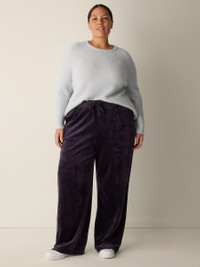 Elevated loungewear. A cozy wide-leg pant with a drawstring waist and pockets, in a soft velour knit made with organic cotton. Pair it with our matching top to make it a set. Style No. F5OET-P4897 DESIGN - Slim through the hips, wider through the leg. Fits the body with ease. - Select colors may vary by store. Lunette pant only available online. - Valerie is 5'9" and wears a size XS in Lunette. - 1 1/2-inch elastic waistband with drawstring. - Front slash pockets. - 11-inch rise; 29 1/2-inch inseam; 11-inch leg opening (size S). 13-inch rise; 29 1/2-inch inseam; 12-inch leg opening (size 1X). - Style No. F5OET-P4897 FABRIC - Plush and cozy. Our velour knit is velvety smooth with a hint of luster—and the elevated feel that comes from blending soft cotton with Tencel™ Lyocell. - Machine wash cold. Tumble dry low. - Made in Vietnam. 60% Organic Cotton/40% Tencel™ Lyocell. SUSTAINABILITY - Tencel™ Lyocell fiber is made from responsibly harvested trees.