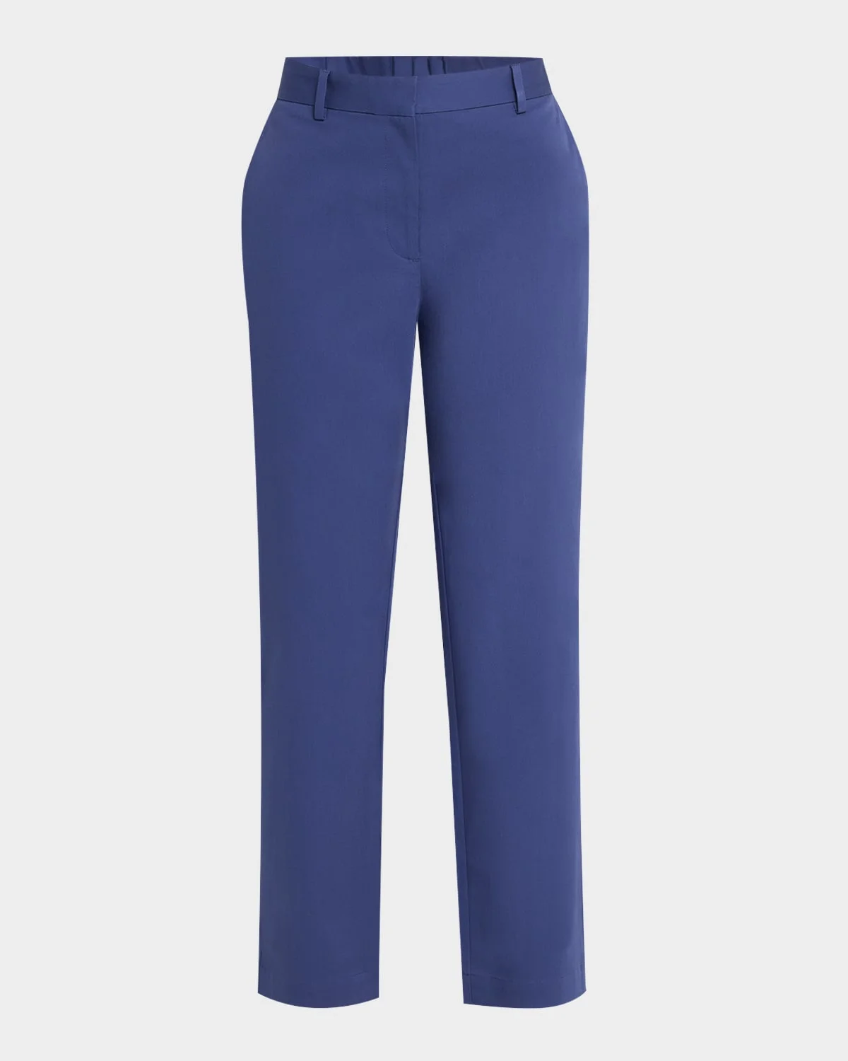 Eileen Fisher trousers in stretch cotton twill Approx. 27.5" inseam Midrise sits high on the hips Partially elasticized waistband Flat front Side slant pockets Back welt pockets Cropped at the ankle Slim, straight legs Zip fly; belt loops Organic cotton/elastane Machine wash cold Made in Portugal