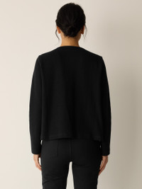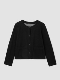 Relaxed yet refined. An easy round neck jacket in a subtly textured doubleknit made from soft organic cotton. Style No. F5OIJ-J5669 DESIGN - Close at the shoulders, wider at the hem. A silhouette that fits the body with ease. - Size S measures 23 inches on the body. Size PS measures 22 inches on the body. Size 1X measures 25 1/2 inches on the body. - Round neck, button front with corozo buttons. - Welt pockets. - Style No. F5OIJ-J5669 FABRIC - Two airy layers of organic cotton—striped on one side, solid on the other. Light and relaxed with softly rippled texture. - Machine wash cold. Tumble dry low. - Made in Peru. 100% Organic Cotton. SUSTAINABILITY - Organic farming supports clean water and healthy soil.