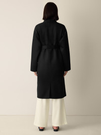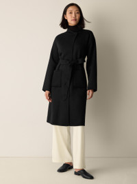 Easy elegance. A high collar coat you can wear open or belted, in a lustrous wool weave with a touch of texture. Style No. F5GEZ-C2164 DESIGN - A generous, boxy fit that drapes away from the body to create movement. - Only available at select EILEEN FISHER stores. - Kalyane is 5'10" and wears a size S, which measures 43 inches on the body. Size 1X measures 44 1/2 inches on the body. - High collar, drop shoulder, snap button front. - Belt with belt loops, front patch pockets. - Center back seam with vent. - Style No. F5GEZ-C2164 FABRIC - A fluid wool weave with subtle sheen, and a hint of rippled texture. - Dry clean only. - Made in Indonesia. 100% Wool. SUSTAINABILITY - Our wool supports ranchers who use better practices for animal welfare and land management.