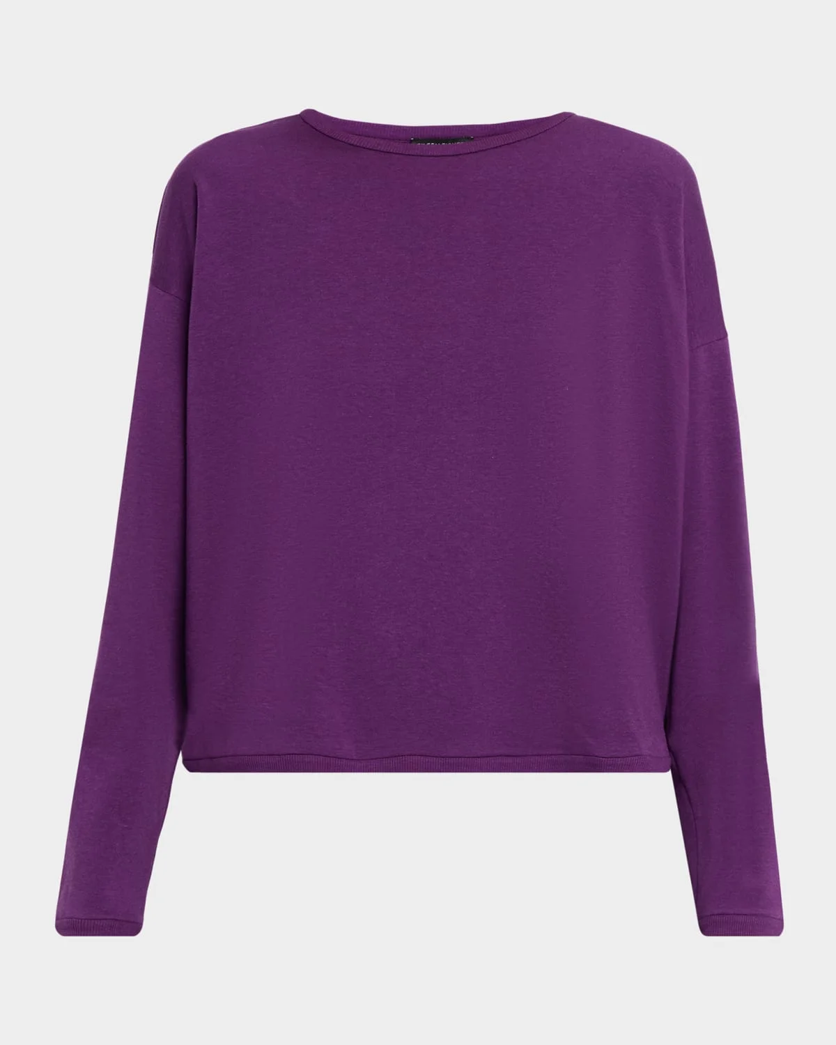 This Eileen Fisher pullover is crafted in smooth terry with a soft brushed fleecy interior Approx. 23"L from shoulders to hem Crew neckline Drop shoulders Long sleeves Boxy fit Pullover style Tencel™ lyocell/organic cotton/elastane Machine wash cold Made in the USA