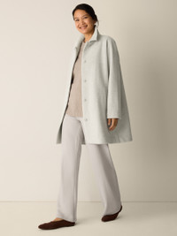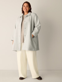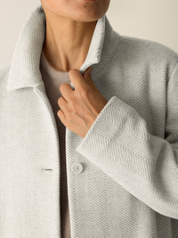 Soft and structured. An elegant coat with a classic collar and button front, in refined wool with a woven-in herringbone pattern. Style No. F5FVC-C2163 DESIGN - Close at the shoulders, wider at the hem. A silhouette that fits the body with ease. - Kalyane is 5'10" and wears a size S, which measures 35 inches on the body. Size 1X measures 36 1/2 inches on the body. - Classic collar, corozo button front, welt pockets. - Center back seam with vent, fully lined. - Style No. F5FVC-C2163 FABRIC - Luxuriously soft, inside and out. A refined weave that's lightly brushed for a sensuous feel. - Dry clean only. - Made in Indonesia. 100% Wool. SUSTAINABILITY - Our wool supports ranchers who use better practices for animal welfare and land management.