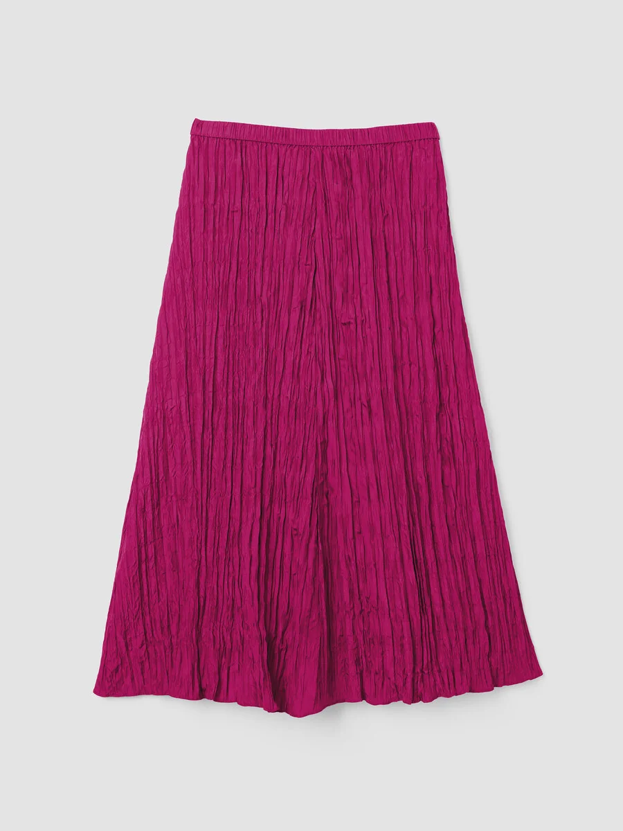A simple silhouette set apart by unique, crushed texture. The flared skirt with long lines, in a lustrous silk weave. Style No. S5TZP-S4406 DESIGN - A slim fit that subtly flares at the ankle. - Branch skirt only available online. Select colors may vary by store. - Kalyane is 5'10" and wears a size S, which measures 34 inches on the body. Haejin is 5'5" and wears a size PS, which measures 32 inches on the body. Size 1X measures 35 inches on the body. - 1-inch elastic waistband. - Style No. S5TZP-S4406 FABRIC - Relaxed elegance. Light and lustrous silk that's twisted for crinkled texture. - Place in mesh bag. Machine wash cold gentle cycle. Do not wring. Twist to crinkle and dry twisted. Do not iron. Do not steam. For best results, dry clean. - Made in China. 100% Silk. SUSTAINABILITY - This fabric is bluesign® APPROVED. It's dyed with safer chemistry using less water and less energy, meeting the bluesign® CRITERIA.
