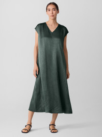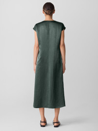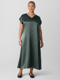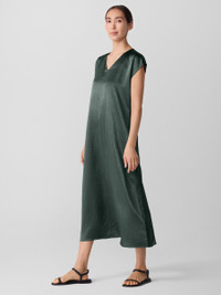 Eye-catching elegance. A fluid dress with a V-neck and cap sleeves, in a lustrous satin weave with crinkled texture. Made in a Fair Trade Certified™ factory. Style No. F5SNY-D5404 DESIGN - Close at the shoulders, wider at the hem. A silhouette that fits the body with ease. - Only available at select EILEEN FISHER stores. - Polina is 5'10" and wears a size XS, which measures 51 inches on the body. Size 1X measures 53 inches on the body. - V-neck, cap sleeves. - Center front and back seam. - Style No. F5SNY-D5404 FABRIC - Medium-weight satin with uniquely crinkled texture—and plenty of shine. Made from Naia™ Renew cellulosic fiber produced in part with recycled material, helping keep waste out of landfills. - Machine wash cold. Tumble dry low. - Made in Indonesia. 100% NaiaTM Acetate. SUSTAINABILITY - Our Fair Trade Certified™ factories meet rigorous social and environmental standards. By choosing Fair Trade Certified™ products, you’re helping to improve the lives of workers, build resilient communities and protect the environment. - This fabric is bluesign® APPROVED. It's dyed with safer chemistry using less water and less energy, meeting the bluesign® CRITERIA.