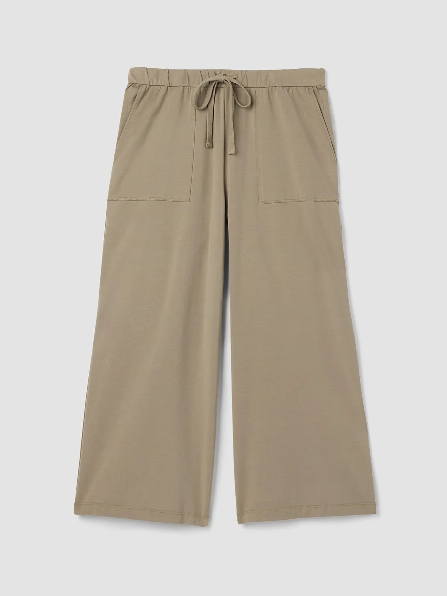 A relaxed pant that drapes and moves. With a wide leg and front patch pockets, in smooth jersey made from soft organic Pima cotton. Style No. S5OJH-P4861 DESIGN - Slim through the hips, wider through the leg. Fits the body with ease. - Select colors may vary by store. - Kalyane is 5'10" and wears a size S. - 1 1/2-inch elastic waistband with drawstring. - Front patch pockets. - 11-inch rise; 25-inch inseam; 12-inch leg opening (size S). 13-inch rise; 25-inch inseam; 13-inch leg opening (size 1X). - Style No. S5OJH-P4861 FABRIC - Soft and stretchy. A jersey knit with the luxurious feel that comes from extra-long staple organic cotton. Now grown using regenerative farming methods that focus on soil health and biodiversity. Grown, spun, dyed and knit in Peru. - Machine wash cold. Tumble dry low. - Made in Peru. 93% Organic Cotton/7% Spandex. SUSTAINABILITY - Organic farming supports clean water and healthy soil.
