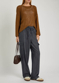 Info & Care Eileen Fisher cotton trousers Elasticated drawstring waist, side slant;pockets, flap pockets at sides Pull on 100% organic;cotton; Machine wash Size & Fit Inside leg length: 30 inches/ 76.5cm Midweight Loose, straight-leg cut; Model is 5'9"/ 175cm and wears a size small