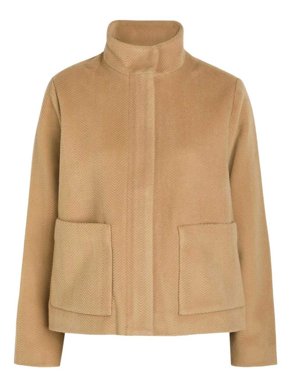 herringbone pocket jacket Highlights - Biscuit beige - Herringbone pattern - Front patch pockets - Mock neck Imported Composition Fabric 100% Washing instructions Read Manufacturer Guidelines