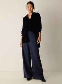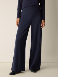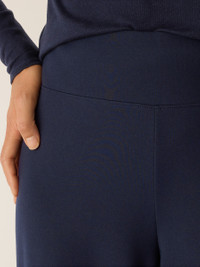 Soft yet structured, a versatile ponte pant that's easy to live in—and easy to wash. With a wide leg and full length. Made in a Fair Trade Certified™ factory. Style No. F5TJX-P4610 DESIGN - Slim through the hips, wider through the leg. Fits the body with ease. - Kalyane is 5'10" and wears a size S in Ink. - 3-inch elastic waistband, back darts for shape. - 12-inch rise; 30 1/2-inch inseam; 12-inch leg opening (size S). 10 1/2-inch rise; 28 1/2-inch inseam; 11 1/2-inch leg opening (size PS). 13-inch rise; 30 1/2-inch inseam; 13-inch leg opening (size 1X). - Style No. F5TJX-P4610 FABRIC - The sophistication of our signature doubleknit, now made with recycled nylon. Just the right amount of structure—and the right amount of stretch. - Machine wash cold. Line dry. - Made in Vietnam. 66% Tencel™ Lyocell/29% Recycled Nylon/3% Elastane/2% Nylon. SUSTAINABILITY - Our Fair Trade Certified™ factories meet rigorous social and environmental standards. By choosing Fair Trade Certified™ products, you’re helping to improve the lives of workers, build resilient communities and protect the environment. - Tencel™ Lyocell fiber is made from responsibly harvested trees. - Recycled nylon keeps waste out of the landfill. It's part of our commitment to changing the way clothes are made.