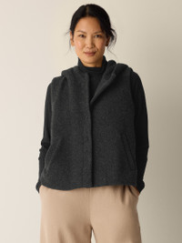 The go-to layering piece you'll reach for all season. A cozy hooded vest with snap buttons and pockets. In a soft boucle knit made from recycled wool. Made in a Fair Trade Certified™ factory. Style No. F5RMA-V1353 DESIGN - Close at the shoulders, wider at the hem. A silhouette that fits the body with ease. - Kalyane is 5'10" and wears a size S, which measures 24 inches on the body. Size 1X measures 26 1/2 inches on the body. - Hood, front placket with snap buttons, fully lined. - Welt pockets. - Style No. F5RMA-V1353 FABRIC - Our soft and luxurious boucle knit, updated with recycled wool. Plush, dense and surprisingly light. - Hand wash cold. Reshape and lay flat to dry. - Made in Vietnam. 61% Recycled Wool/35% Recycled Polyamide/4% Other Fibers. SUSTAINABILITY - Our Fair Trade Certified™ factories meet rigorous social and environmental standards. By choosing Fair Trade Certified™ products, you’re helping to improve the lives of workers, build resilient communities and protect the environment. - Recycled nylon keeps waste out of the landfill. It's part of our commitment to changing the way clothes are made.