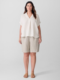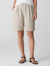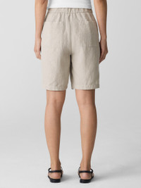 A warm-weather staple. Easy shorts designed with a fly front closure and pockets. In our signature Organic Linen—not too heavy, not too light. Made in a Fair Trade Certified™ factory. Style No. S5RII-P4796 DESIGN - Straight through the leg. Fits the body with ease. - Select colors may vary by store. - Bo Bay is 5'9" and wears a size XS. - 1 1/2-inch elastic waistband, zipper fly front with corozo button closure. - Front slash pockets, back patch pockets. - 1-inch-deep front pleats, back darts for shape. - 11-inch rise; 9-inch inseam; 11-inch leg opening (size XS). 13-inch rise; 9-inch inseam; 13-inch leg opening (size 1X). - Style No. S5RII-P4796 FABRIC - Our medium-weight organic linen—natural texture with a relaxed feel. Loved since 2008. - Machine wash cold, gentle cycle. Line dry. Do not dry clean. - Made in Vietnam. 100% Organic Linen. SUSTAINABILITY - Our Fair Trade Certified™ factories meet rigorous social and environmental standards. By choosing Fair Trade Certified™ products, you’re helping to improve the lives of workers, build resilient communities and protect the environment. - Organic farming supports clean water and healthy soil. - This fabric is bluesign® APPROVED. It's dyed with safer chemistry using less water and less energy, meeting the bluesign® CRITERIA.