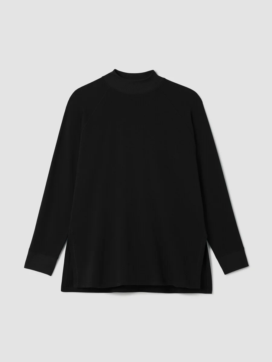 All-day comfort. The mock neck top with side slits, in a longer silhouette. Soft and cozy in our best-loved terry. Style No. F5FYW-T6380 DESIGN - Close at the shoulders, wider at the hem. A silhouette that fits the body with ease. - Select colors may vary by store. - Kalyane is 5'10" and wears a size S, which measures 30 inches on the body. Size PS measures 28 inches on the body. Size 1X measures 32 1/2 inches on the body. - Mock neck, raglan seams. - 8-inch side slits. - Style No. F5FYW-T6380 FABRIC - An evolution of our best-loved terry. Smooth and soft with a brushed fleecy interior for a cozier feel. Knit in the US with Tencel™ Lyocell. - Machine wash cold. Line dry. - Made in USA of imported materials. 65% Tencel™ Lyocell/28%Organic Cotton/7% Elastane. SUSTAINABILITY - Tencel™ Lyocell fiber is made from responsibly harvested trees.