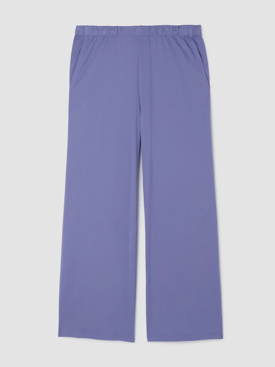 A lounge-worthy wide pant, perfect for sleeping or relaxing. Designed with versatility in mind—pair it with one of our matching tops or mix and match. In soft organic Pima cotton that's grown using regenerative farming practices. Style No. SLANK-B923 DESIGN - Slim through the hips, wider through the leg. Fits the body with ease. - Only available online. - 1-inch elastic waistband with drawstring, slash pockets. - 11 1/2-inch rise; 27-inch inseam; 12-inch leg opening (size S). 13 1/2-inch rise; 27-inch inseam; 13-inch leg opening (size 1X). - Style No. SLANK-B923 FABRIC - Organic Pima cotton, double knit with interlocking stitches for body and structure. We use fiber that's grown using regenerative farming methods that focus on soil health and biodiversity. - Machine wash cold. Tumble dry low. - Made in Peru. 100% Organic Cotton. SUSTAINABILITY - Organic farming supports clean water and healthy soil.