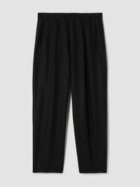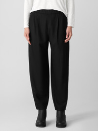 Modern look, luxurious feel. The lantern pant with front pleats and a softly sculpted hem. In a light wool jersey made with regenerative fiber. Made in a Fair Trade Certified™ factory. Style No. F5BOB-P4593 DESIGN - Subtly curved through the leg, slightly tapered at the ankle. Fits the body with ease. - Kalyane is 5'10" and wears a size S. - 1 1/2-inch elastic waistband, 1-inch pleats. - Side panel detail, on-seam pockets. - 12-inch rise; 27 1/2-inch inseam; 7-inch leg opening (size S). 12-inch rise; 25 1/2-inch inseam; 7-inch leg opening (size PS). 14-inch rise; 27 1/2-inch inseam; 8-inch leg opening (size 1X). - Style No. F5BOB-P4593 FABRIC - Our lightweight wool jersey is soft, smooth and luxurious. This fiber is sourced from farms that use regenerative practices to promote soil health, biodiversity, water quality and emissions removal—and also support the communities where the wool is produced. - Dry clean only. - Made in Vietnam. 100% Wool. SUSTAINABILITY - Our Fair Trade Certified™ factories meet rigorous social and environmental standards. By choosing Fair Trade Certified™ products, you’re helping to improve the lives of workers, build resilient communities and protect the environment. - By sourcing ZQRX wool, Eileen Fisher is part of a collective movement to support 500+ wool growers across New Zealand, Australia and South Africa transition toward a regenerative future.