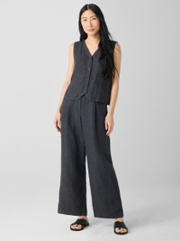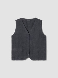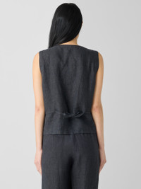 The vest. A layering MVP, with a button front and tie detail in back. In our signature Organic Linen that’s not too heavy, not too light. Made in a Fair Trade Certified™ factory. Style No. S5LOL-V1336 DESIGN - Close at the shoulders, wider at the hem. A silhouette that fits the body with ease. - Bo Bay is 5'9" and wears a size XS, which measures 21 1/2 inches on the body. Haejin is 5'5" and wears a size PS, which measures 21 inches on the body. Size 1X measures 24 1/2 inches on the body. - V-neck, sleeveless, button front with corozo buttons. - Welt pockets, self tie at the back. - Style No. S5LOL-V1336 FABRIC - Crisp, textural linen with the nuanced color that comes from delave dyeing. Each garment is unique. - Machine wash cold. Tumble dry low. - Made in Indonesia. 100% Organic Linen. SUSTAINABILITY - Our Fair Trade Certified™ factories meet rigorous social and environmental standards. By choosing Fair Trade Certified™ products, you’re helping to improve the lives of workers, build resilient communities and protect the environment. - Organic farming supports clean water and healthy soil. - This fabric is bluesign® APPROVED. It's dyed with safer chemistry using less water and less energy, meeting the bluesign® CRITERIA.