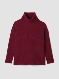 A full-circle moment. A plush turtleneck made from a blend of recycled cashmere—and recycled wool yarn made from pre-loved EILEEN FISHER clothes. Style No. F5WQQ-W6230 DESIGN - A generous, boxy fit that drapes away from the body to create movement. - Only available at select EILEEN FISHER stores. - Jisu is 5'9" and wears a size XS, which measures 25 1/2 inches on the body. Size 1X measures 28 1/2 inches on the body. - Turtleneck, drop shoulder. - 4-inch side slits. - Style No. F5WQQ-W6230 FABRIC - A plush blend of recycled wool with recycled cashmere for softness. The wool yarn is made from pre-loved clothes collected through our Renew take-back program, and is processed in a mill in Italy that’s redefining textile-to-textile recycling. - Dry clean only. - Made in Romania. 100% Wool.