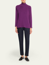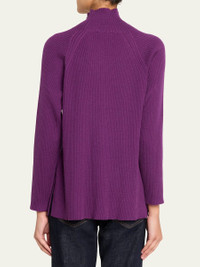 This Eileen Fisher sweater is rib knit in signature Merino wool yarns with hem side slits for comfortable movement Approx. 27"L from shoulders to hem Turtleneck Long raglan sleeves Hem side slits Relaxed fit Pullover style Merino wool Hand wash Imported