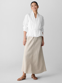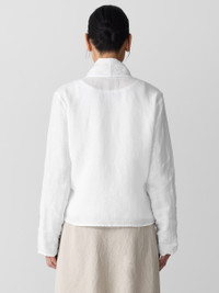 Simple and sophisticated. An airy jacket with a folded high collar and open front in our lightest organic linen—layer it over everything. Style No. S5OLA-J5795 DESIGN - Close at the shoulders, wider at the hem. A silhouette that fits the body with ease. - Only available online and in our LAB store. - Size S measures 23 1/2 inches on the body. Size 1X measures 26 inches on the body. - Folded high collar, open front. - Tie at back waist. - Style No. S5OLA-J5795 FABRIC - Our lightest, finest organic linen. Flax from France in a handkerchief-weight weave. Loved since 1997. - Machine wash cold inside out. Line dry. Do not steam. Do not dry clean. - Made in Indonesia. 100% Organic Linen. SUSTAINABILITY - Organic farming supports clean water and healthy soil.
