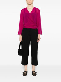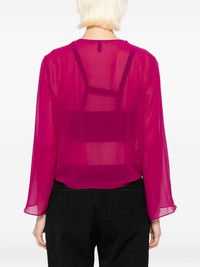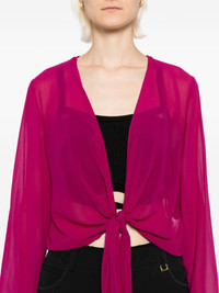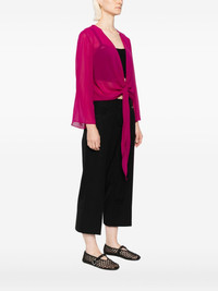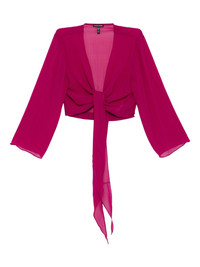 silk georgette jacket Highlights - Aubergine purple - Self-tie fastening - Long draped sleeves Imported Composition Silk 100% SIZE & FIT Model measurements Height 5 ft 10 in(1.78 m) Bust/Chest 31.88 in(81 cm) Hips 37 in(94 cm) Waist 25.19 in(64 cm) FittingInformation Designed to be unstructured, offering a loose fit throughout Made from a lightweight non-stretch fabric Washing instructions Machine Wash