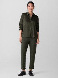 Classic—with a touch of shine. An elegant button-up shirt that goes straight into the wash, in our lustrous silk charmeuse. Made in a Fair Trade Certified™ factory. Style No. F5SM2-T5775 DESIGN - Close at the shoulders, wider at the hem. A silhouette that fits the body withease. - Kalyane is 5'10" and wears a size XS, which measures 25 1/2 inches on the body.Size PS measures 24 1/2 inches on the body. Size 1X measures 28 1/2 inches onthe body. - Classic collar, button front and button cuffs with double pleat. - Back yoke with center box pleat; 4-inch side slits. - Mother-of-pearl buttons. - Style No. F5SM2-T5775 FABRIC - Lustrous, satin-woven silk with a touch of stretch for movement. - Hand wash cold. Line dry. - Made in China. 96% Silk/4% Spandex. SUSTAINABILITY - Our Fair Trade Certified™ factories meet rigorous social and environmentalstandards. By choosing Fair Trade Certified™ products, you’re helping to improvethe lives of workers, build resilient communities and protect the environment. - This fabric is bluesign® APPROVED. It's dyed with safer chemistry using lesswater and less energy, meeting the bluesign® CRITERIA.