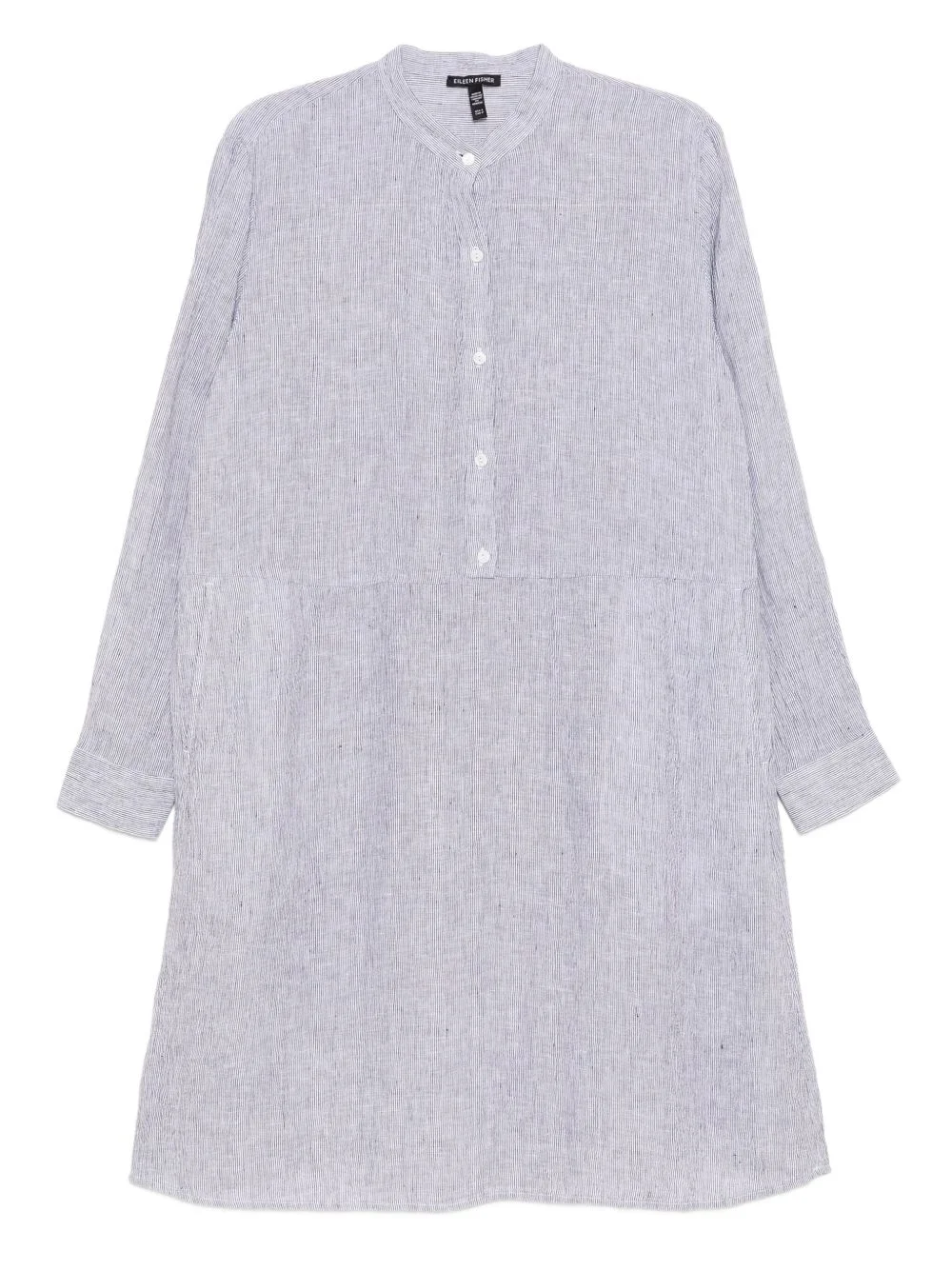 linen striped dress Highlights - Steel grey - Front button fastening - Crew neck - Buttoned-cuff sleeves Imported Composition Organic Linen 100% Washing instructions Machine Wash