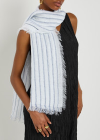 Info & Care Eileen Fisher linen scarf Striped, frayed trim 100% organic linen Hand wash Size & Fit Width: 27.5 inches/ 70cm Length: 70 inches/ 178cm