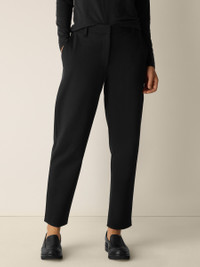 The perfect blend of comfort and polish. A tapered trouser pant with a fly front and pockets, in our soft stretch ponte. Made in a Fair Trade Certified™ factory. Style No. F5TJX-P4847 DESIGN - A silhouette designed to taper at the ankle. Fits the body with ease. - Only available at select EILEEN FISHER stores. - Fly front with button and zipper closure. - Front slash pockets, back welt pockets. - Belt loops, back darts for shape. - 10-inch rise; 28-inch inseam; 6 1/2-inch leg opening (size XS). 10-inch rise; 26-inch inseam; 6-inch leg opening (size PS). 12 1/2-inch rise; 28-inch inseam; 8-inch leg opening (size 1X). - Style No. F5TJX-P4847 FABRIC - The sophistication of our signature doubleknit, now made with recycled nylon. Just the right amount of structure—and the right amount of stretch. - Machine wash cold. Line dry. - Made in Vietnam. 66% Tencel™ Lyocell/29% Recycled Nylon/3% Elastane/2% Nylon. SUSTAINABILITY - Our Fair Trade Certified™ factories meet rigorous social and environmental standards. By choosing Fair Trade Certified™ products, you’re helping to improve the lives of workers, build resilient communities and protect the environment. - Tencel™ Lyocell fiber is made from responsibly harvested trees. - Recycled nylon keeps waste out of the landfill. It's part of our commitment to changing the way clothes are made.