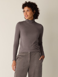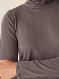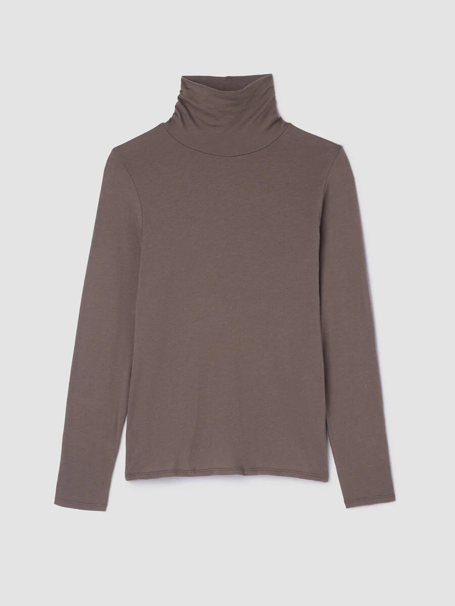 The outfit starter, in a subtly sheer knit. Your key to layering this season—and beyond. In a soft blend of cotton and Tencel™ Lyocell that dresses up or down. Style No. F5BFG-T6175 DESIGN - Our closest fit, designed to hug the body. With stretch for maximum comfort. - Kalyane is 5'10" and wears a size S, which measures 24 1/2 inches on the body. - Turtleneck, long sleeves. - Style No. F5BFG-T6175 FABRIC - A lightweight knit with a subtly sheer finish. The fluidity of Tencel™ Lyocell meets the softness of organic cotton. Made with fiber that's grown using regenerative farming methods that support soil health and biodiversity. - Machine wash cold. Tumble dry low. Do not dry clean. - Made in Peru. 48% Organic Cotton/48% Tencel Lyocell/4% Spandex. SUSTAINABILITY - Tencel™ Lyocell fiber is made from responsibly harvested trees.