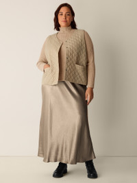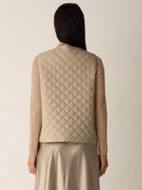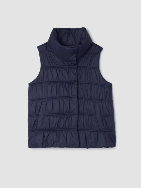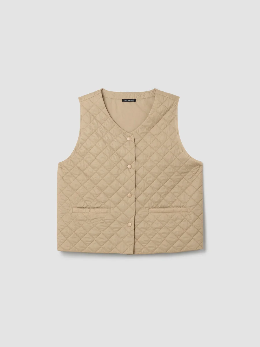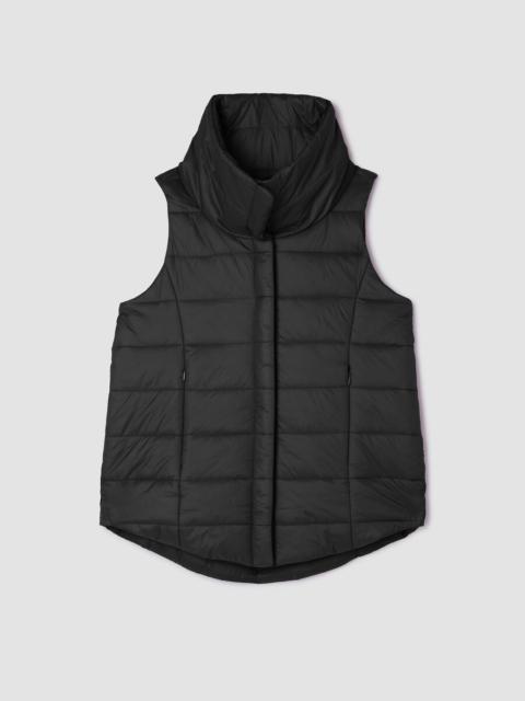 A quilted vest with a V-neck and snap button front. In a recycled nylon weave that keeps warmth in—and waste out of landfills. Style No. F5GGR-V1352 DESIGN - Close at the shoulders, wider at the hem. A silhouette that fits the body with ease. - Kalyane is 5'10" and wears a size S in Reed, which measures 23 inches on the body. Size PS measures 22 inches on the body. Size 1X measures 25 1/2 inches on the body. - V-neck, sleeveless, snap button front. - Front welt pockets. - Style No. F5GGR-V1352 FABRIC - A papery weave with softness and subtle luster. With PrimaLoft™ recycled polyester fill made from plastic bottles. - Machine wash cold. Tumble dry low. - Made in Indonesia. 100% Recycled Nylon. SUSTAINABILITY - Recycled nylon keeps waste out of the landfill. It's part of our commitment to changing the way clothes are made. - This fabric is bluesign® APPROVED. It's dyed with safer chemistry using less water and less energy, meeting the bluesign® CRITERIA.