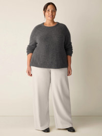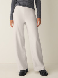 The one Eileen calls the "magic pant.” A full-length style that instantly elongates. Even better, it’s made with regenerative wool—and made in a Fair Trade Certified™ factory. Style No. F5BOB-P4812 DESIGN - Slim through the hips, wider through the leg. Fits the body with ease. - Jisu is 5'9" and wears a size XS. - 1 1/2-inch elastic waist. - Back and side darts; side zipper. - 11-inch rise; 30-inch inseam; 12-inch leg opening (size XS). 11-inch rise;28-inch inseam; 11 1/2-inch leg opening (size PS). 13-inch rise; 30-inch inseam;13-inch leg opening (size 1X). - Style No. F5BOB-P4812 FABRIC - Our lightweight wool jersey is soft, smooth and luxurious. This fiber is sourcedfrom farms that use regenerative practices to promote soil health, biodiversity,water quality and emissions removal—and also support the communities where thewool is produced. - Dry clean only. - Made in Vietnam. 100% Wool. SUSTAINABILITY - Our Fair Trade Certified™ factories meet rigorous social and environmentalstandards. By choosing Fair Trade Certified™ products, you’re helping to improvethe lives of workers, build resilient communities and protect the environment. - By sourcing ZQRX wool, EILEEN FISHER is part of a collective movement to support500+ wool growers across New Zealand, Australia and South Africa transitiontoward a regenerative future.