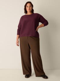 Soft and simple. The crew neck top you'll reach for all season, in fine wool made with fiber that's helping to restore depleted grassland in Argentina through regenerative farming practices. Style No. F5FWU-W6240 DESIGN - Designed with a generous, boxy fit that drapes away from the body to create movement. - Select colors may vary by store. - Kalyane is 5'10" and wears a size S, which measures 24 inches on the body. Size 1X measures 26 1/2 inches on the body. - Crew neck, drop shoulder. - Style No. F5FWU-W6240 FABRIC - Light, drapey and felted for sweater-soft texture. The wool is not only responsibly sourced, it's helping to regenerate depleted grassland in Argentina with potential to sequester carbon and fight climate change. - Dry clean only. - Made in Vietnam. 100% Wool. SUSTAINABILITY - Our wool supports Argentinian ranchers who regenerate depleted grasslands through holistic farming methods while ensuring that better animal welfare practices are in place. - This fabric is bluesign® APPROVED. It's dyed with safer chemistry using less water and less energy, meeting the bluesign® CRITERIA.